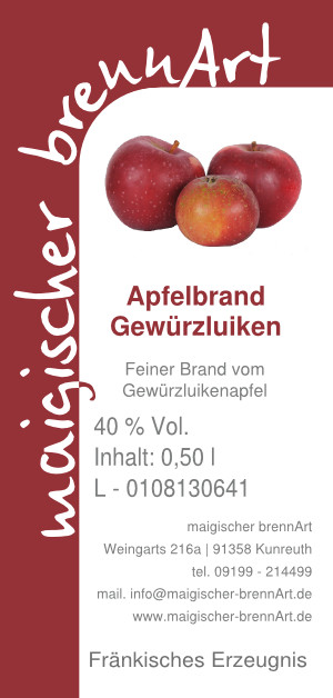 Dieser sortenreine Apfelbrand wird vom Gewürzluikenapfel hergestellt.