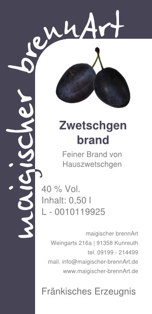Zwetschgenbrand, gebrannt von der Fränkischen Hauszwetschge.